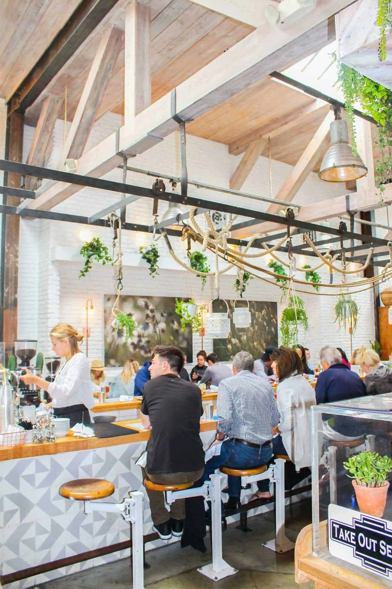 Beyond its foodie offerings, The Butcher’s Daughter is popular for its chic, inviting ambiance. The Venice location, nestled on the trendy Abbot Kinney Boulevard, boasts a design that is both hip and welcoming. The interior features lush greenery, rustic wooden accents, and an abundance of natural light, creating a serene environment that complements the fresh menu. This thoughtful design extends to the outdoor patio, where diners can enjoy their meals amidst hanging plants and twinkling lights, embodying the quintessential California dining experience.